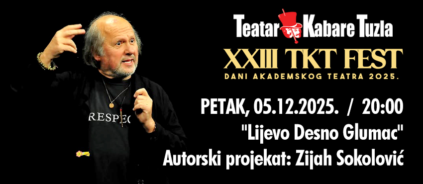 By clicking on the Buy a Ticket button you begin the process of purchasing tickets for XXIII TKT Fest - Lijevo Desno Glumac on 05.12.2025. 20:00 .