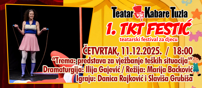 By clicking on the Buy a Ticket button you begin the process of purchasing tickets for I TKT Festić 2025 - Trema: predstava za vježbanje teških situacija on 11.12.2025. 18:00 .