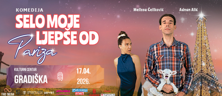 By clicking on the Buy a Ticket button you begin the process of purchasing tickets for SELO MOJE LJEPŠE OD PARIZA - GRADIŠKA 17/04 on 17.04.2026. 20:00 .