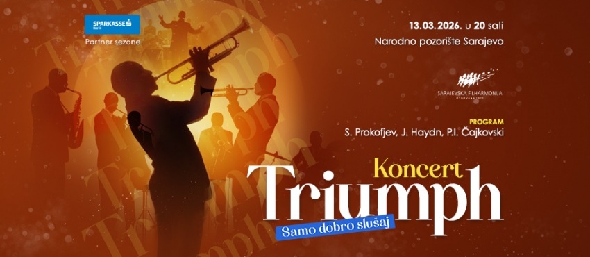 Koncert Triumph okuplja tri kompozitora čija djela, svako na svoj način, svjedoče o istrajnosti, stvaralačkoj snazi i umjetničkom nadahnuću. Upoznajte i izvanredan talenat nove generacije! Kao solist predstavit će se petnaestogodišnjak Nikola Curović, a njegov solo koncert je prilika da doživite energiju, emociju i virtuoznost mladog umjetnika kojeg čeka sjajna karijera.