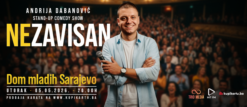 By clicking on the Buy a Ticket button you begin the process of purchasing tickets for Stand-up show - Nezavisan - Andrija Dabanović - SARAJEVO on 05.05.2026. 20:00 .