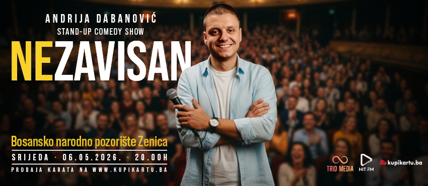 By clicking on the Buy a Ticket button you begin the process of purchasing tickets for Stand-up show - Nezavisan - Andrija Dabanović - ZENICA on 06.05.2026. 20:00 .