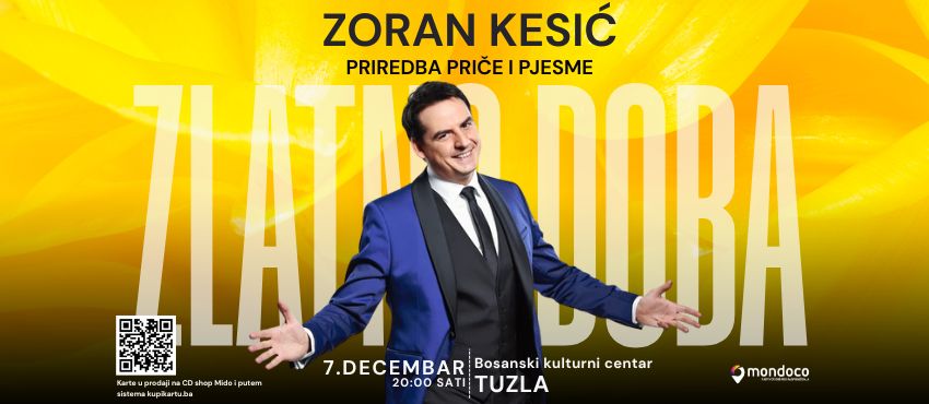 Klikom na link Kupi kartu započinjete proces kupovine karata za ZORAN KESIĆ - TUZLA 07/12 u terminu 07.12.2025. u 20:00 .