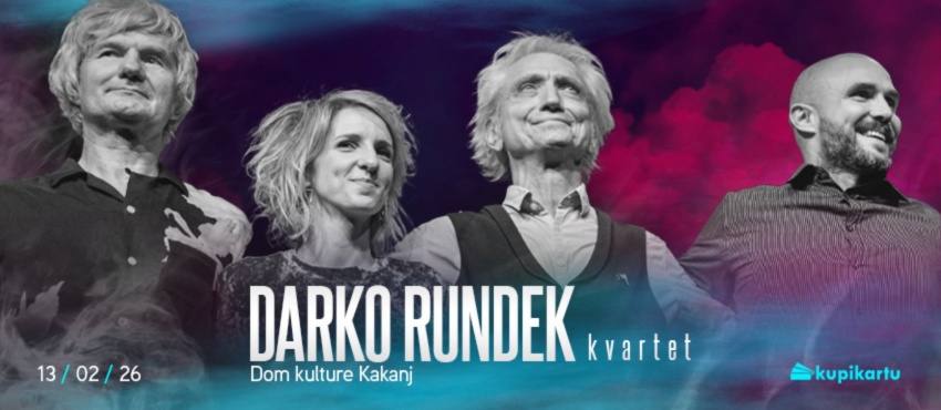 Jedan od najznačajnijih kompozitora, pjevača i gitarista u regionu, Darko Rundek, nastupit će 13.02.2026.godine u Domu kulture Kakanj u formi Kvarteta, a u društvu Igora Pavlice (truba), Ane Kovačić (saksofon) i Mire Manojlovića (udaraljke). Legendarni frontmen Haustora tokom godina mijenja postave (Cargo Orkestar, Trio, Kvartet, Ekipa, Duo…) u kojima se ostvaruje kroz nove kreativne pristupe, a iza njega su brojni albumi i uspješnice koji asociraju na njegovu pojavu, glas i interpretaciju. Doživite čaroliju koja ne poznaje vrijeme ni granice, a koja će biti pravo osvježenje i doživljaj za pamćenje, jer u pitanju su vrsni muzičari sa posebnim senzibilitetom; spremni su prilagoditi se malom i velikom prostoru, ali uvijek od publike traže da im se prepuste, pažljivo slušajući njihovu koncertnu priču.
